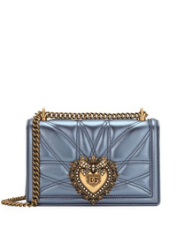 medium Devotion shoulder bag Highlights - Light blue - Nappa leather - Laminated finish - Padded design - Pale gold-tone hardware - Leather and chain-link shoulder strap - Internal zip-fastening pocket - Internal logo plaque - Press-stud fastening Made in Italy Composition Outer: Nappa Leather 100% SIZE & FIT Measurement DEPTH 1.18 in(3 cm) HEIGHT 5.7 in(14.5 cm) WIDTH 8.26 in(21 cm)
