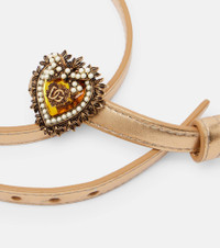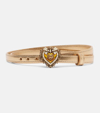Sicilian culture is on display in Dolce&Gabbana's aesthetic, with bold styles inspired by the brand's Italian heritage. This Devotion belt is crafted from metallic leather and defined by the signature embellished, logo-detailed heart buckle. Product Details - Material: leather - Lining: leather - Made in Italy - Designer color name: Gold - Item color: gold - Item number: P01110652 Size & Fit - Width 1cm-0.5" - Buckle width 3.5cm-1.5"