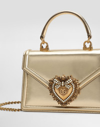 This small top-handle bag from the Devotion line comes in materials that are perfect for special occasions. Made from nappa mordore leather, it features the exclusive bejeweled heart fastening and the shoulder strap inspired by the techniques of high quality jewelers: • Top handle and detachable shoulder strap • Front flap with bejeweled branded heart hand-tooled from a metal alloy with pearl inlay • Concealed magnetic fastening and customized heart • Calfskin interior with flat pocket • Item comes with its own special dust bag and packaging • Measurements: 13 x 19 x 4.5 cm - 5.1 x 7.5 x 1.8 inches • Made in Italy Care And Details Composition: 80% Lambskin 20% Calfskin