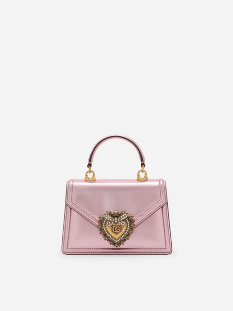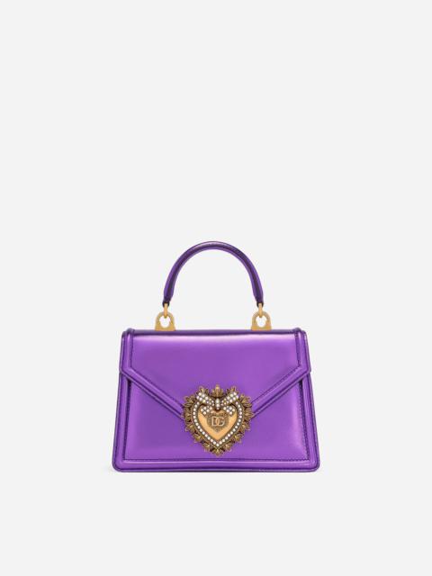 This small top-handle bag from the Devotion line comes in materials that are perfect for special occasions. Made from nappa mordore leather; it features the exclusive bejeweled heart fastening and the shoulder strap inspired by the techniques of high quality jewelers. • Top handle and detachable shoulder strap • Front flap with bejeweled branded heart hand-tooled from a metal alloy with pearl inlay • Concealed magnetic fastening and customized heart • Calfskin interior with flat pocket • Item comes with its own special dust bag and packaging • Measurements. 13 x 19 x 4.5 cm - 5.1 x 7.5 x 1.8 inches • Made in Italy Composition: 80% Lambskin 20% Calfskin