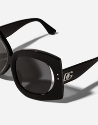The women's FW25 runway sunglasses offer a modern reinterpretation of a 1960s vintage aesthetic.All styles, crafted in acetate with intricate detailing that enhances their three-dimensionality.The oversized front shapes create a bold statement, softened by a gentle lateral cut on the lenses. • Black acetate frame • Black acetate temples • Gradient dark grey lenses • 100% UV protection • Size bridge - temple- lens: 15 - 135 - 55 mm • Fitting: Standard • Packaging: Institutional • Made in Italy