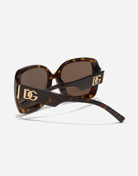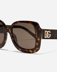 This vintage-inspired oversized frame combines classic temple design with refined metal accents, featuring the DG crossed logo for an unmistakable touch of luxury. • Havana acetate frame •Havana acetate temples • Dark brown lenses • 100% UV protection • Size bridge - temple - lens: 21 - 145 - 53.4 mm • Fitting: Standard • Packaging: Institutional • Made in Italy