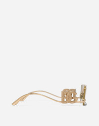 A new stylish & exclusiveDGLogo sunglasses characterized by the finest design.A DGLogo delicately embellished with 670 crystals per sideshowcasing attention to details & high level of craftsmanshi • Gold metal frame • Gold metal temples • Clear mirror real yellow gold lenses • 100% UV protection • Size: 60 - 14 - 145 mm • Fitting: Adjustable nosepads • Packaging: Sicily • Made in Italy