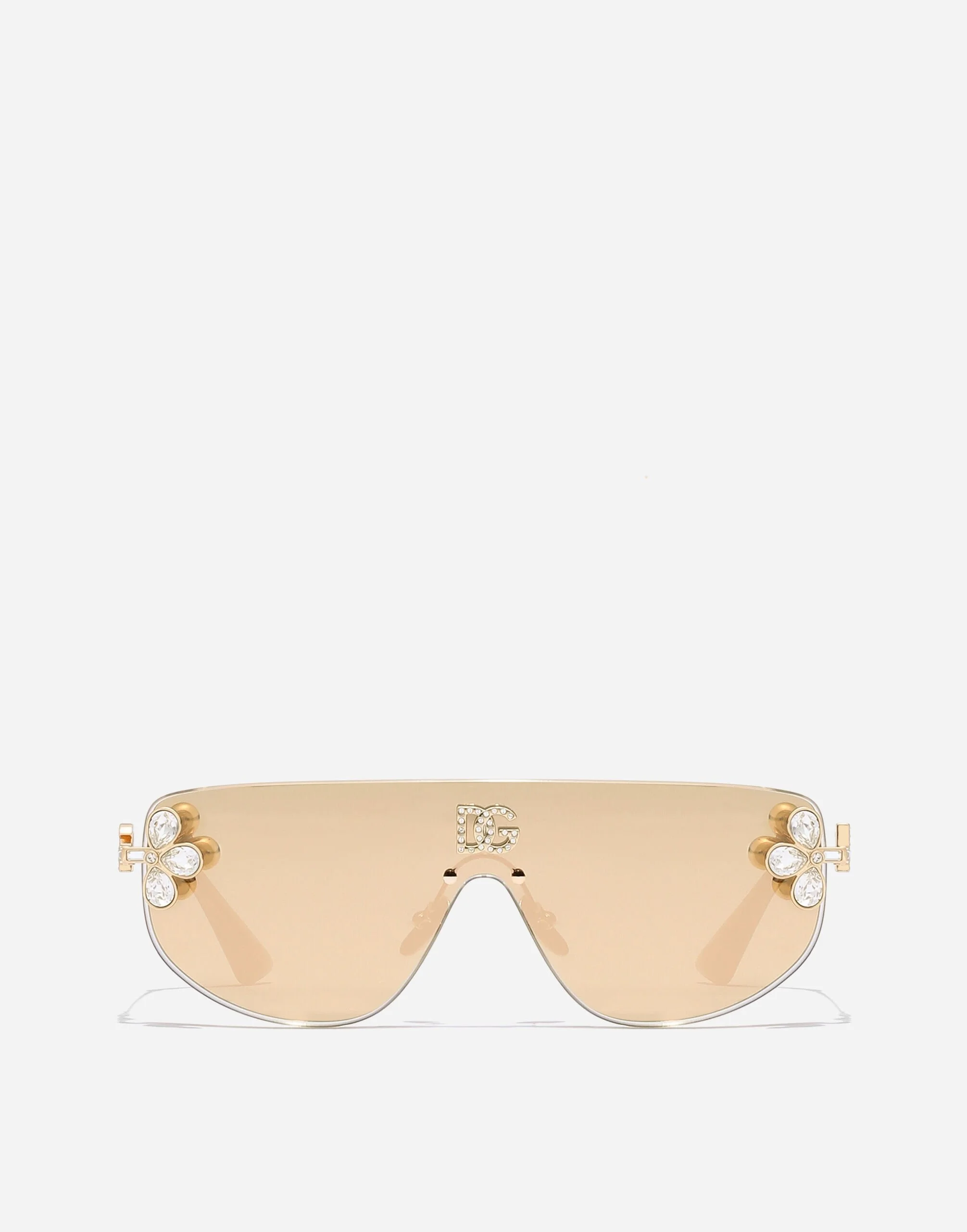 The DG Crystal family showcases refined shapes adorned with luminous crystals, capturing a graceful blend of sophistication, elegance and femininity. Metal frames enriched with luminous crystals and the iconic DG Crossed logo, adding a luxurious touch to every piece. • Gold metal frame • Gold metal temples • Gold mirrored lenses • 100% UV protection • Size lens - bridge - temple: 38 - 145 mm • Fitting: Adjustable nosepads • Packaging: Institutional • Made in Italy