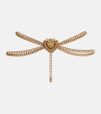 Show your love for Dolce&Gabbana with this statement chain belt. Crafted from gold-toned brass, the piece features dual straps that meet at the center with a heart-shaped charm, adorned with faux pearls and finished with the iconic DG signature. Product Details - Material: brass, plastic, glass - Made in Italy - Item color: gold - Designer color name: Gold - Closure: lobster-clasp fastening - Item number: P01110645 Size & Fit - Min. width 0.8cm-0.5" - Max. width 5cm-2" - Length of size S = 65/79cm-25.5/31" - Length of size M = 85/99cm-33.5/39" - Length of size L = 86/99cm-34/39"