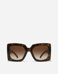 A square acetate frame with a timeless design, featuring refined filigree decorations.Presented in commercial color palette, this piece is a refined statement of enduring style. • Havana acetate frame • Havana acetate temples withgold metal details and scarlet, emerald,clear crystals •Gradient dark brown lenses •100% UV protection • Size bridge - temple - lens: 22 - 145 - 47.1 mm • Fitting: Standard • Packaging: Institutional • Made in Italy