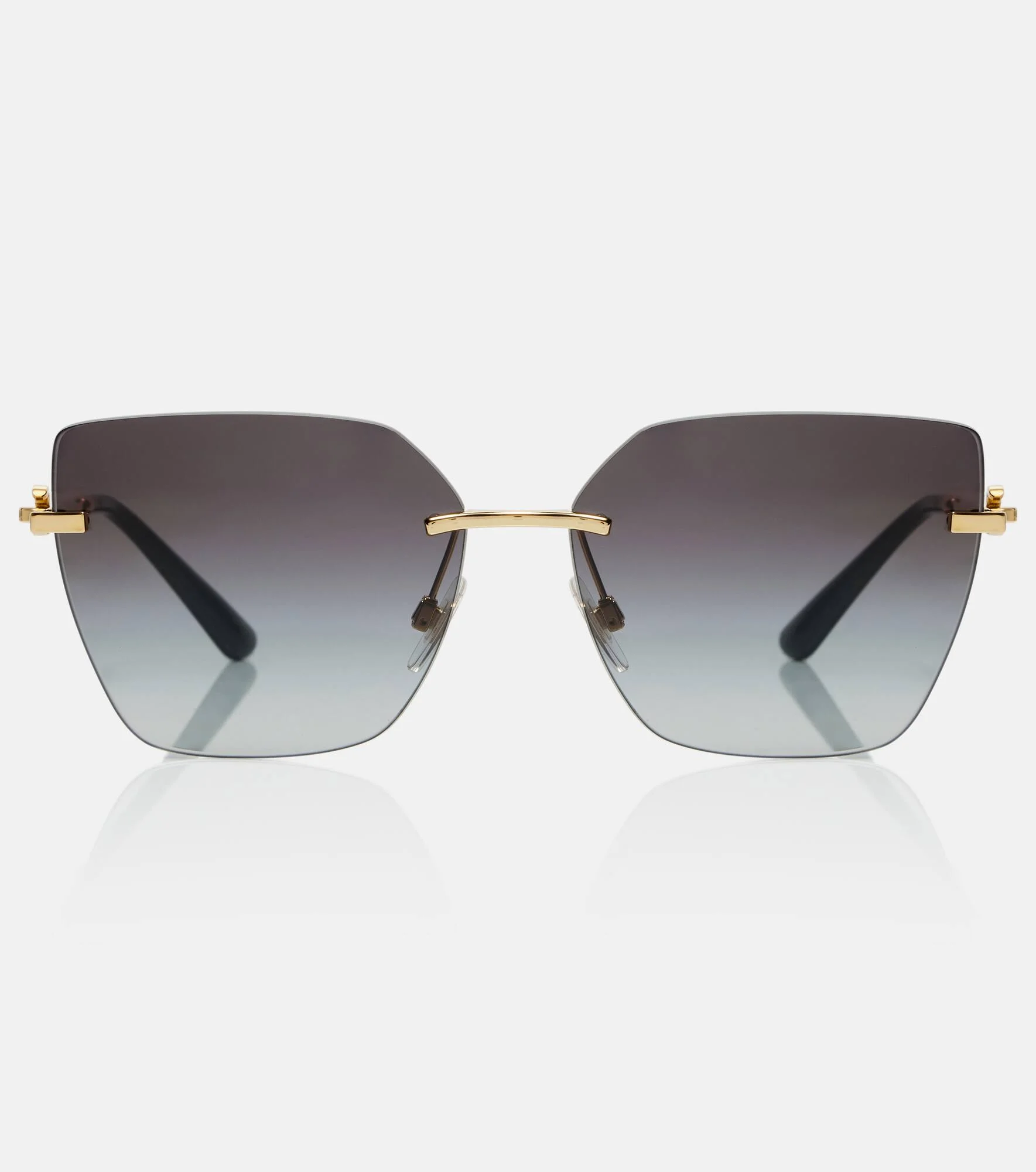 Invest in bold accessories like the DG Flip sunglasses from Dolce&Gabbana. This cat-eye pair boasts an oversized, rimless silhouette complete with gold-toned finishes, including flipped DG detailing at the temples. Product Details - Frame material: metal - Frame color: gold - Lens filter category 3 - Lens color: grey - Made in Italy - Includes: case - The color of the case may vary - Item number: P01121360 Size & Fit - Lens width: 62mm-2.45" - Bridge size: 14mm-0.55" - Earpiece length: 140mm-5.5"