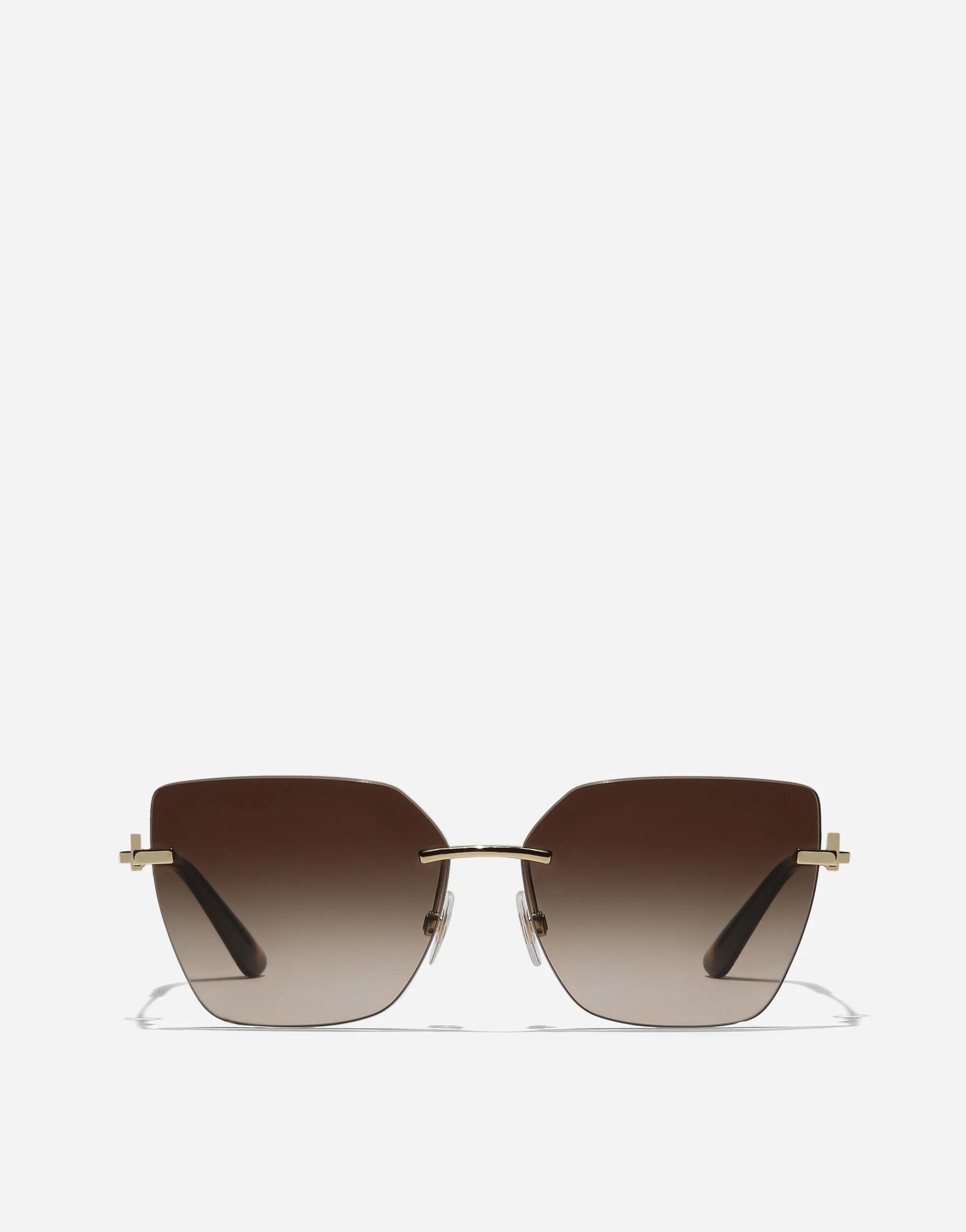 This delicate rimless frame showcases a refined feminine silhouette, complemented by sleek metal temples that seamlessly integrate the iconic DG crossed logo. Enhanced by sophisticated gradient lenses. • Metal gold frame • Metal gold temples with havana terminal • Brown gradient lenses • 100% UV protection • Size bridge - temple - lens: 14- 140 - 52.2 mm • Fitting: Adjustable nosepads • Packaging: Institutional • Made in Italy