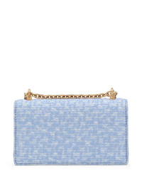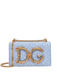 DG Girls mini bag Highlights - Sky blue - Virgin wool blend - Boucle construction - Gold-tone hardware - Applique logo - Foldover top with magnetic fastening - Chain-link shoulder strap - Main compartment - Internal card slot - This piece comes complete with a protective dust bag. Made in Italy Composition Virgin Wool 65% Outer: Viscose 29%, Polyamide 6% Lining: CALFSKIN 100%
