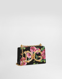 Reworked with a contemporary edge, this DG Girls shoulder bag comes in charmeuse fabric. Featuring the Baroque DG logo in vintage brass-plated ABS, it has a sliding chain shoulder strap. Medium charmeuse DG Girls bag: • Black and Pink • Front flap with hidden double magnetic fastening • Sliding chain in vintage brass-plated metal • Nappa leather lining and branded tag on the interior • Item comes with a branded dust bag • Measurements: 14.5 x 21 x 3 cm • Made in Italy External composition: 85% Silk 10% Lambskin 5% Spandex Internal composition: 100% Lambskin