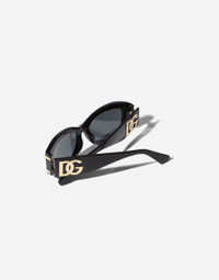 Oval acetate model with an ultra feminine and vintage style that blends classic shape with modern sophistication. The wide temples are enhanced with the metal DG crossed logo. • Black acetate frame • Black acetate temples • Dark grey enses • 100% UV protection • Size lens - bridge - temple: 55- 18- 145 mm • Fitting: Standard • Packaging: Institutional • Made in Italy