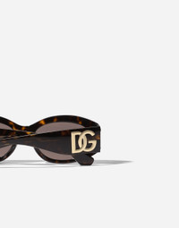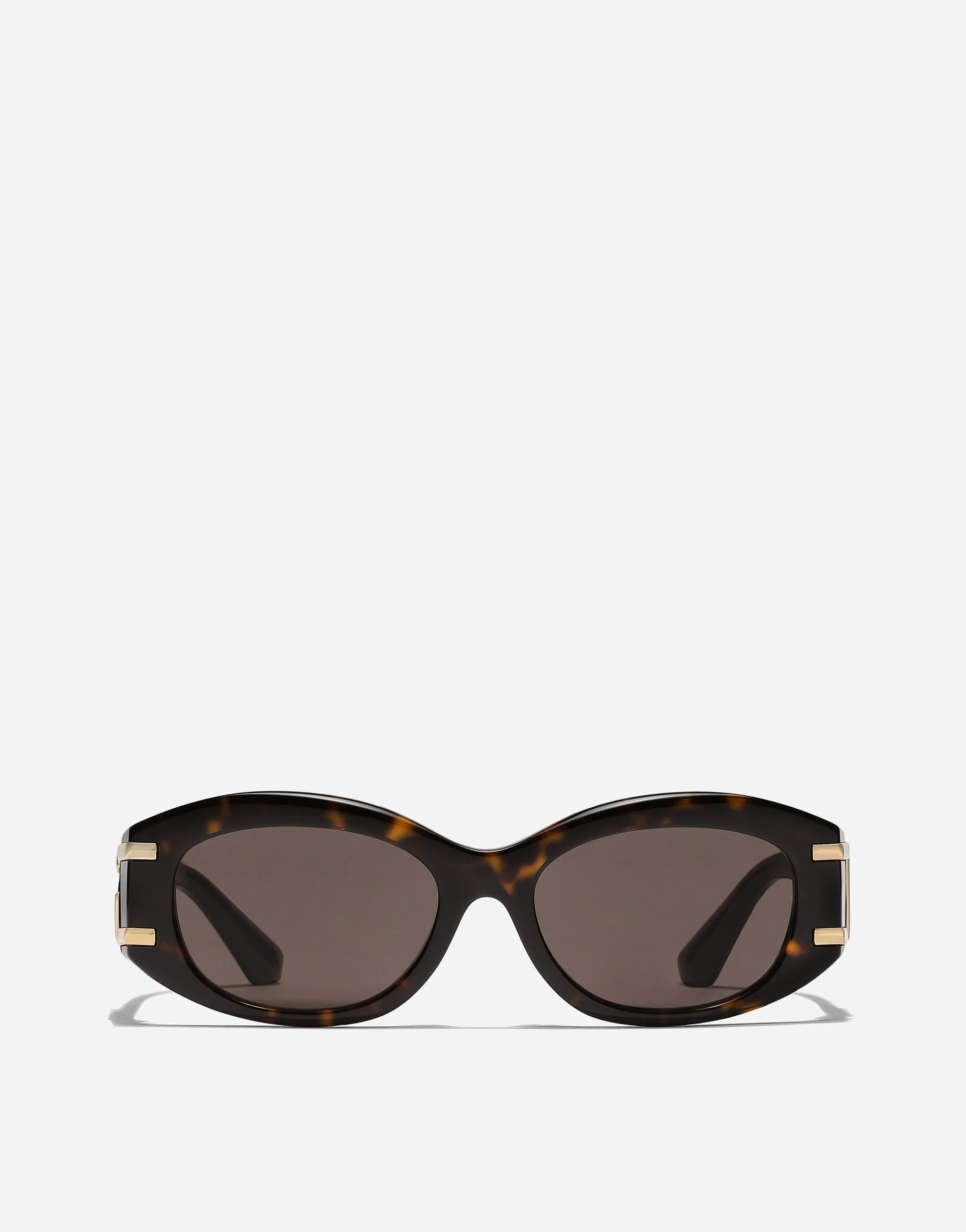 Oval acetate model with an ultra feminine and vintage style that blends classic shape with modern sophistication. The wide temples are enhanced with the metal DG crossed logo. • Havana acetate frame • Havana acetate temples • Dark brown lenses • 100% UV protection • Size lens - bridge - temple: 55- 18- 145 mm • Fitting: Standard • Packaging: Institutional • Made in Italy
