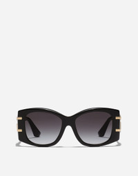 This new rectangular acetate model features a sleek and design, combining classic elegance with contemporary flair. The wide temples are adorned with the iconic metal DG crossed logo, adding a bold and distinctive touch to the look. • Black acetate frame • Black acetate temples • Grey gradient black lenses • 100% UV protection • Size lens - bridge - temple: 54 - 17- 145 mm • Fitting: Standard • Packaging: Institutional • Made in Italy