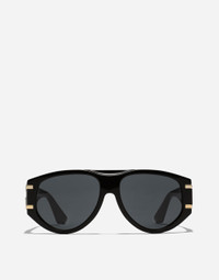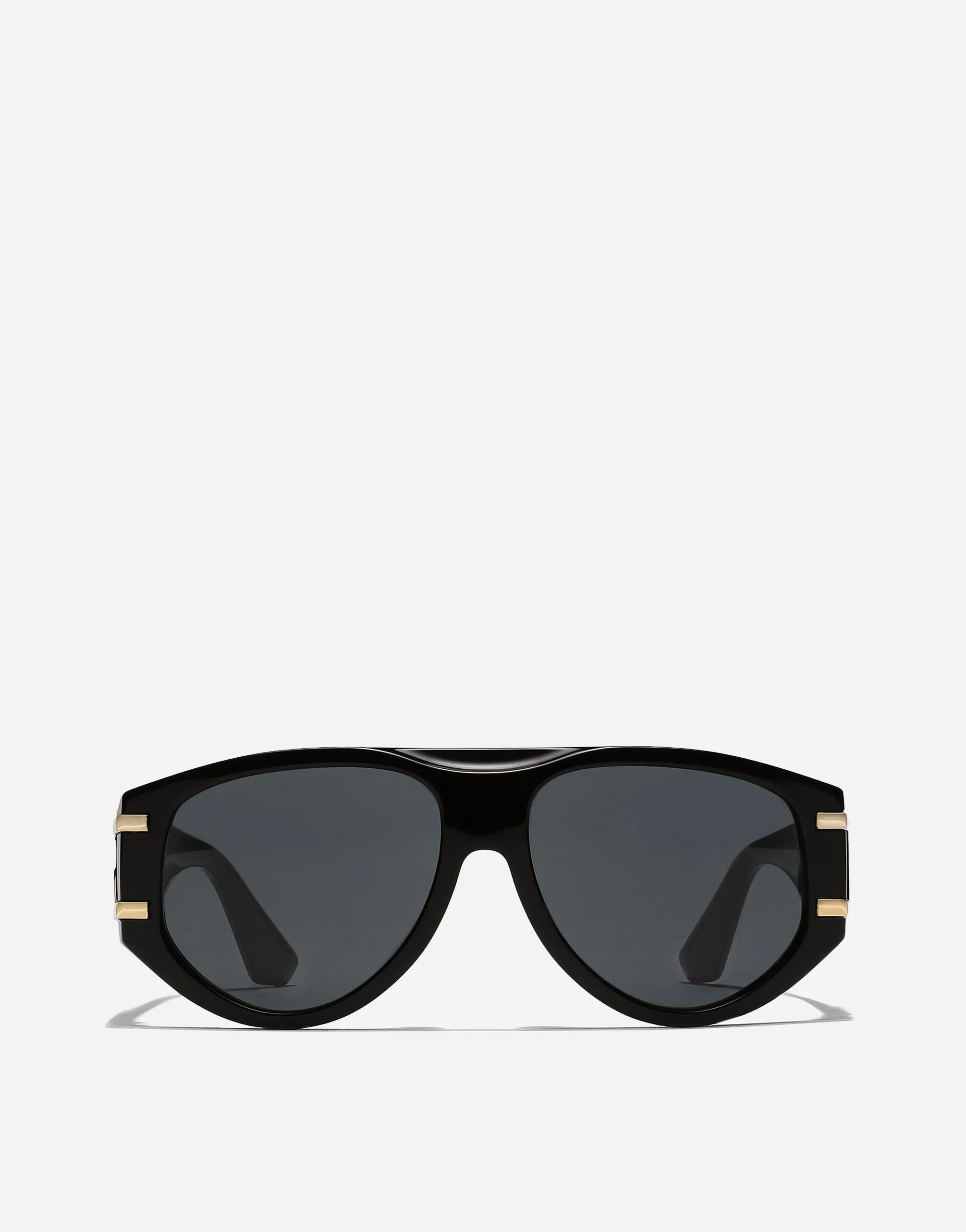 Iconic pilot model stands out with its modern, faceted shape, featuring sharp lines and a contemporary design. Model is enhanced with exclusive metal details on the front, adding an elegant and refined touch. The wide temples are adorned with the metal DG crossed logo. • Black acetate frame • Black acetate temples • Dark grey lenses • 100% UV protection • Size lens - bridge - temple: 57 - 16 - 145 mm • Fitting: Standard • Packaging: Institutional • Made in Italy