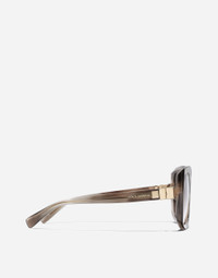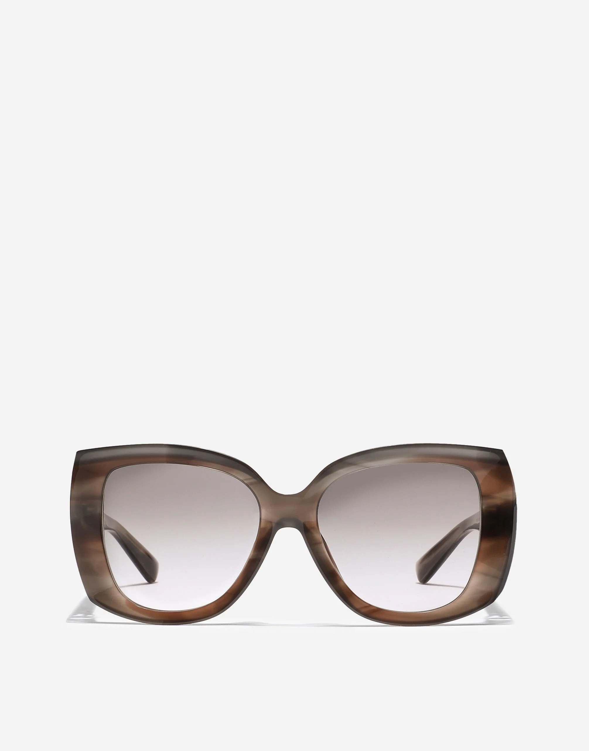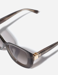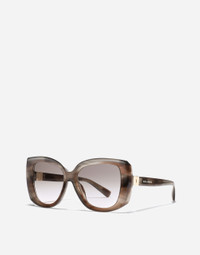 A blend of timeless elegance and modern spirit: the DG HINGE collection of women's sunglasses features an oversized acetate model with a retro vintage charm. • Striped grey acetate frame • Striped grey acetate temples • Pink gradient brown lenses • 100% UV protection • Size lens - bridge - temple: 56 - 18 - 145 mm • Fitting: Standard • Packaging: Institutional • Made in Italy