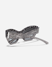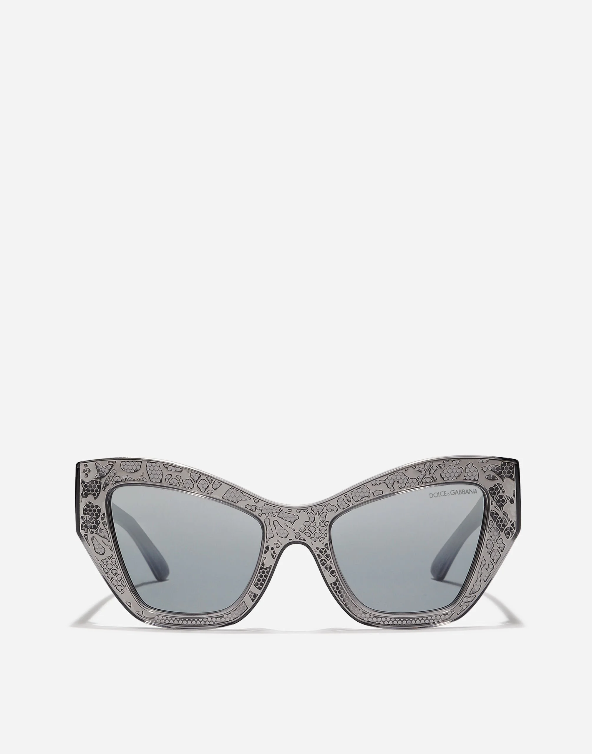 This acetate cat-eye model showcases a perfect blend of sophistication and innovation. The design features a photo-cut metal detail seamlessly embedded between two layers of acetate, creating a unique and elegant effect • Dark grey acetate frame • Dark grey acetate temples • Grey mirror silver gradient lenses • 100% UV protection • Size lens - bridge - temple: 52 - 21 - 145 mm • Fitting: Standard • Packaging: DG Sicily • Made in Italy