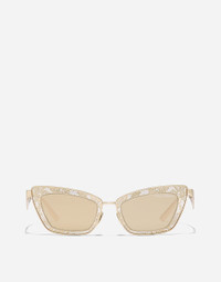 Ultra-feminine, enhanced by a lace motif, the new sunglasses from the Lace gold plated family by Dolce&Gabbana. • Gold plated metal frame • Gold plated metal temples • Clear mirror real yellow gold lenses • 100% UV protection • Size: 51 - 20 - 145 mm • Fitting: Adjustable nosepads • Packaging: Istitutional • Made in Italy