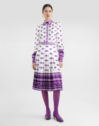 This silk twill shirt dress is the epitome of modern elegance. Perfect for special evenings, it combines sophisticated design with sartorial details that enhance femininity. Twill shirt dress with DG Logo all-over print: • Multi-colored • Fitted bodice • Long sleeves • Functional buttons • Flat pleated skirt • Invisible zip • The model is 175 cm tall and wears size 40 IT • Made in Italy External Composition: 100% Silk