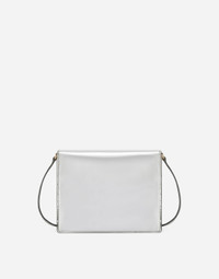 Mirrored-effect calfskin Logo crossbody bag: • Silver • Flap fastening with concealed double magnetic fastening • Mirrored-effect calfskin removable and adjustable strap • Calfskin lining, zipped pocket and a compartment with strap and press-stud button • Item comes with a branded dust bag • Measurements: H16 x W20 x D5.5 cm • Made in Italy The Holiday collection is an extraordinary story that brings together two worlds: Dolce&Gabbana and the great stars from Hollywood’s Golden Age, who were recognized and admired for their wonderful dresses and extraordinarily glamorous looks. The designers are reinventing and making us dream in front of tailored pieces with breathtaking elegance and visual impact, a sparkling mood that will give everyone a modern, recognizable and unique allure on any occasion. External composition: 100% Calfskin Internal composition: 100% Calfskin