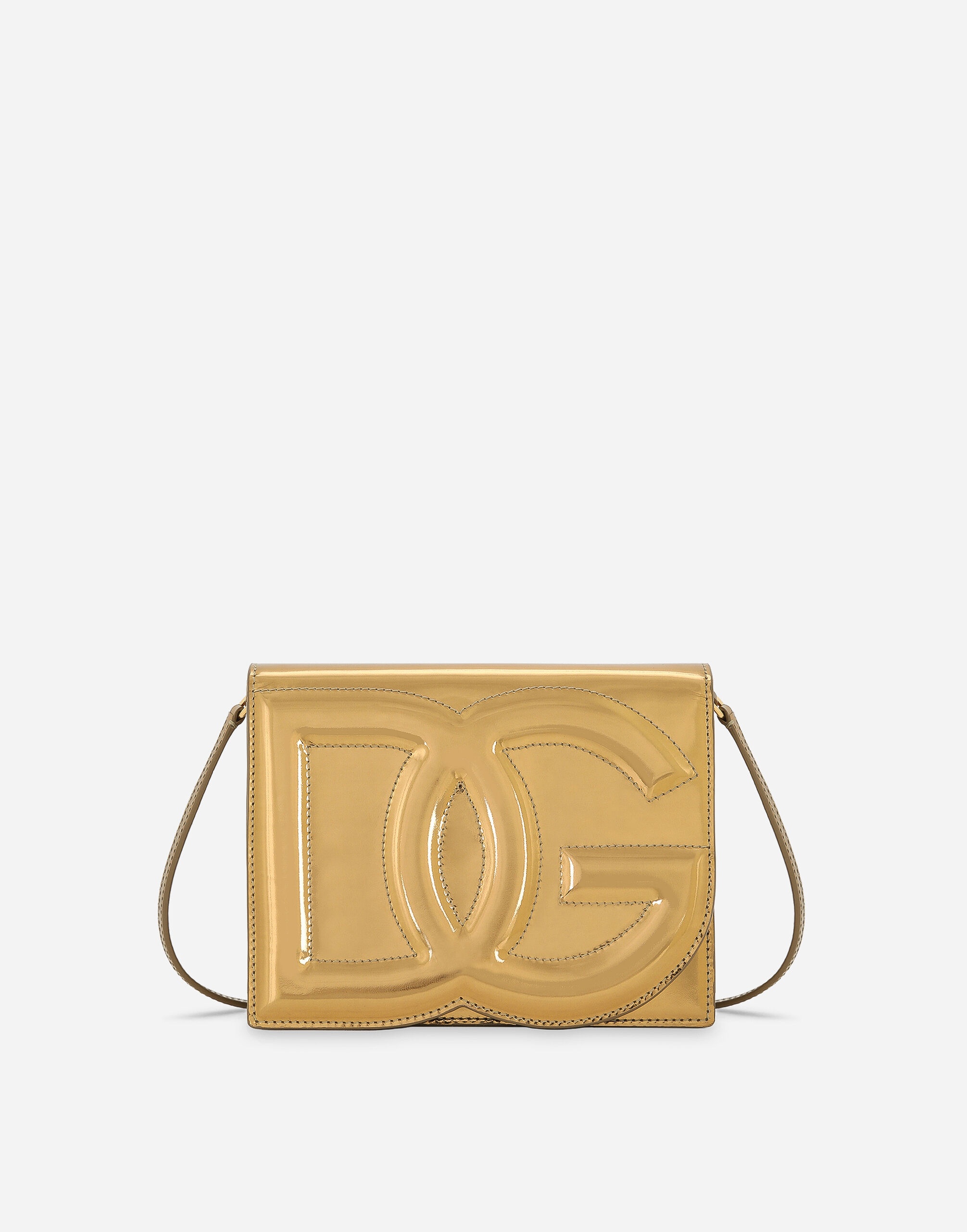 Defined by its refined geometric lines, this crossbody bag pays tribute to our Logo. It comes in 100% mirrored-effect calfskin and features the quilted 3D-effect DG logo. Mirrored-effect calfskin DG Logo Bag crossbody bag: • Gold • Flap fastening with concealed double magnetic fastening • Mirrored-effect calfskin removable and adjustable strap • Calfskin lining, zipped pocket and a compartment with strap and press-stud button • Item comes with a branded dust bag • Measurements: H16 x W20 x D5.5 cm • Made in Italy External composition: 100% Calfskin Internal composition: 100% Calfskin