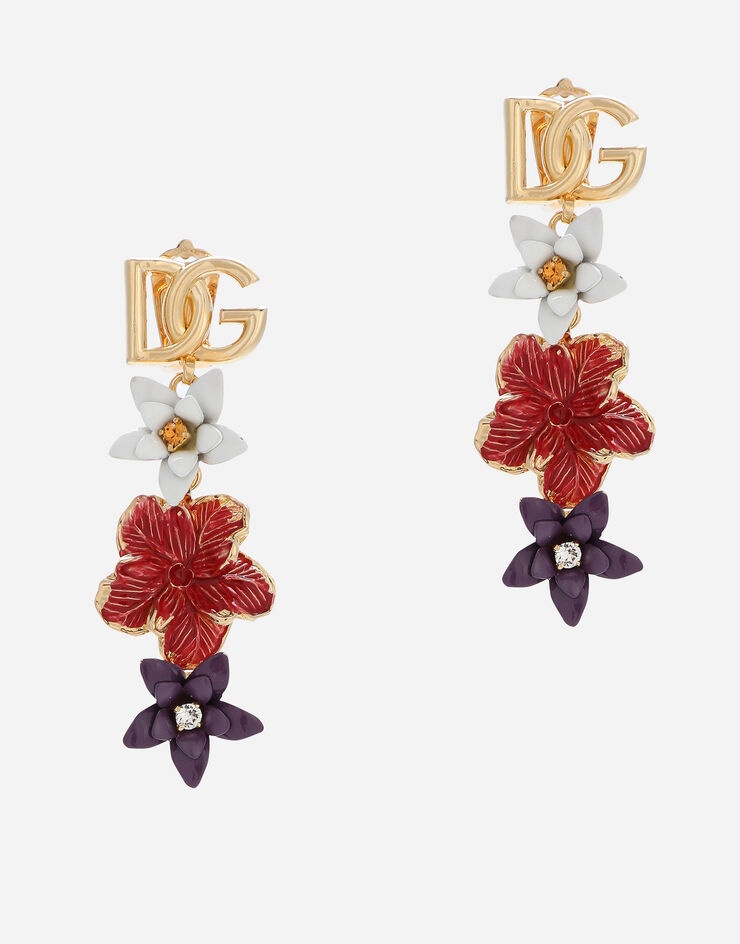 Gold-plated earrings • Decorative DG logo details and enameled glass flowers • Clip fastening • Engraved logo • Nickel-free and hypoallergenic materials • Made in Italy Care And Details External composition: 95% Nickel-free Brass 5% Glass