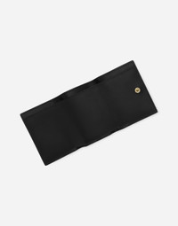 This calfskin French flap wallet features the quilted, 3D-effect DG logo Calfskin DG Logo French Flap wallet: • Black • Flap closure with press-stud fastening • One bill compartment on top • Three flat pockets • Coin pocket with flap and press-stud fastening • Measurements: H7.5 x L10 x D4 cm • Made in Italy External composition: 100% Calfskin Internal composition: 90% Calfskin 10% Viscose