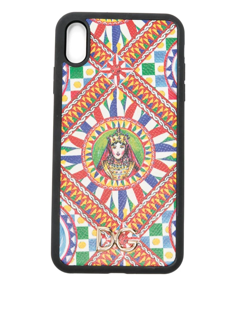 DG-logo patterned phone case Highlights - Multicoloured - Geometric pattern - Gold-tone logo - Rectangle shape Made in Italy Composition Leather 100%