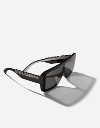 This bold shield frame showcases a dynamic sporty aesthetic, crafted with advanced bi-injection techniques that blend nylon fiber and rubber details for enhanced texture and durability. All the sku’s are adorned with a rubber DG logo on the front. • Black on white nylon fiber frame • Black on white nylon fiber temples •Full black lenses •100% UV protection • Size bridge - temple - lens: x - 145 - x mm • Fitting: Standard • Packaging: Institutional • Made in Italy