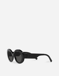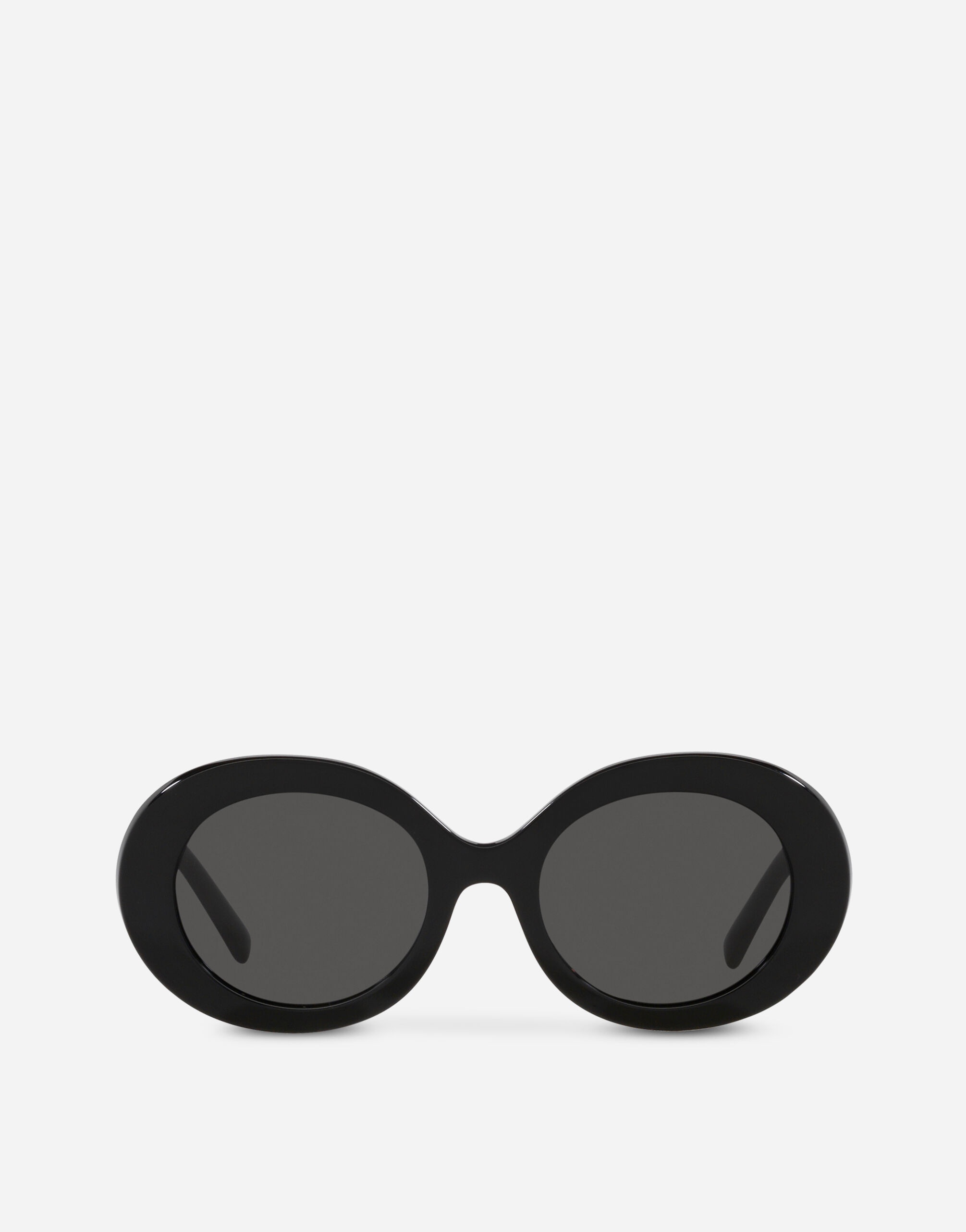 Modern sunglasses with an oval shape, featuring the DG Crossed metal logo giving a sophisticated and elegant effect • Black acetate frame • Black acetate temples • Dark grey lenses • 100% UV protection • Size: 51 - 20 - 145 mm • Fitting: Universal • Packaging: DG Logo • Made in Italy undefined