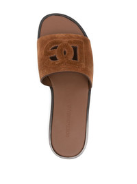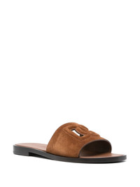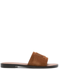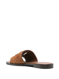 cut-out-logo suede sandals Highlights - Brown - Calf leather - Calf suede - Cut-out logo detailing - Open toe - Slip-on style - Branded leather insole - Flat sole Made in Italy Composition Outer: Calf Suede 100% Sole: Rubber 100%, Calf Leather 100% Lining: Calf Leather 100% SIZE & FIT Measurement HEEL 0.59 in(1.5 cm) Sole height 0.39 in(1 cm)