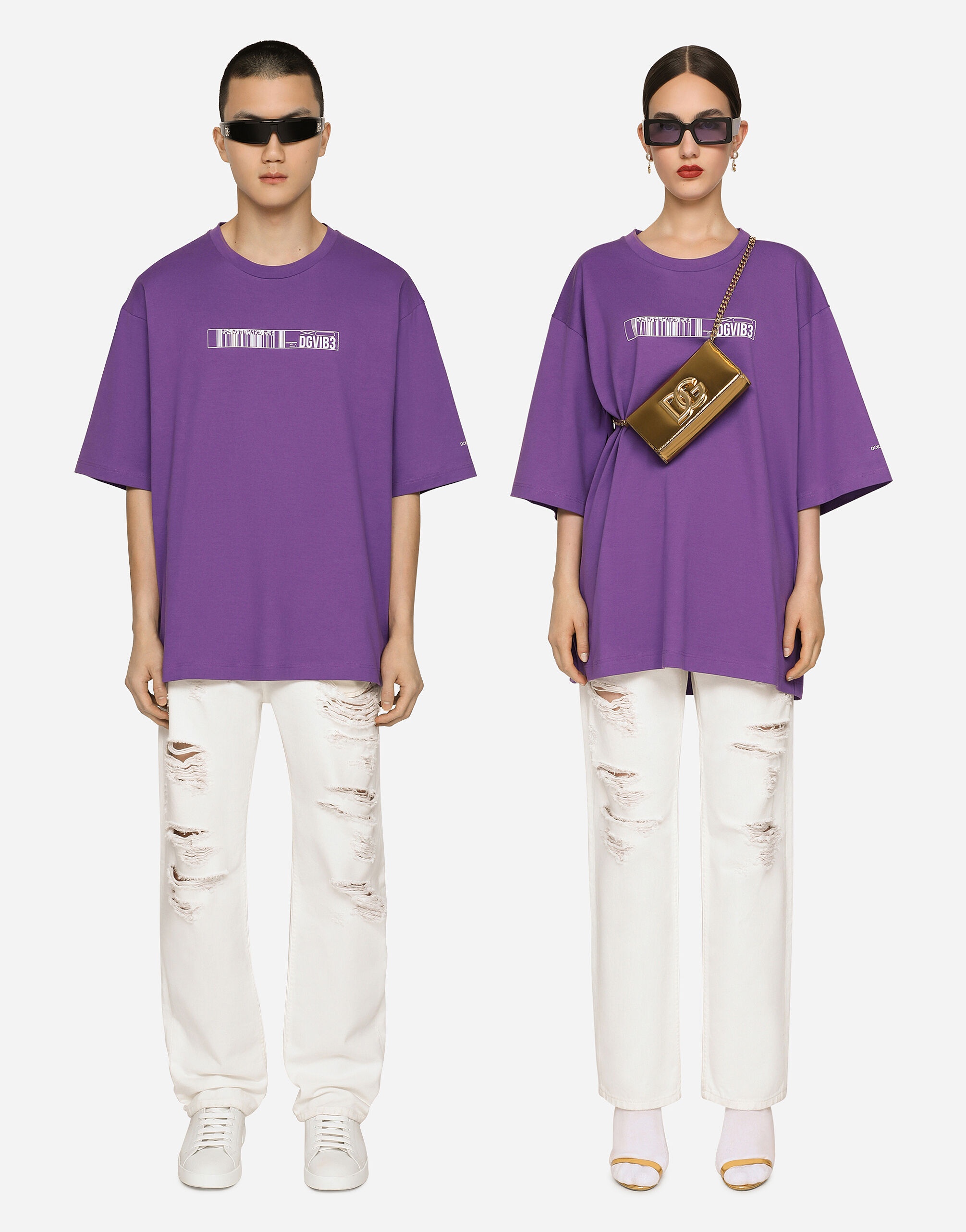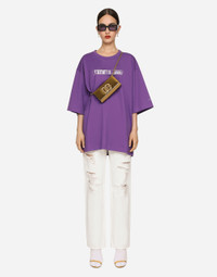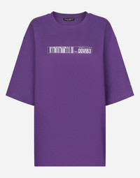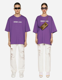 The new DGVIB3 collection is introducing us to the new language of Dolce&Gabbana: graphic taste and music are the keywords. All the prints, symbols, oversize volumes, new shapes, lengths and urban/street influences that we find in the collection are there precisely to recreate a unisex aesthetic, one that isn't tied to any specific physicality, yet with the specific desire to respect the characteristics of both sexes and convey a new and as-yet unexplored side of the Dolce&Gabbana world. Short-sleeved round-neck T-shirt in cotton jersey with DGVIB3 print: • Green • Round neck • Short full sleeves • Loose fit • The piece measures 79 cm from the center back on a size IT S • The model is 175 cm tall and wears a size IT L • Made in Italy External composition: 100% Cotton