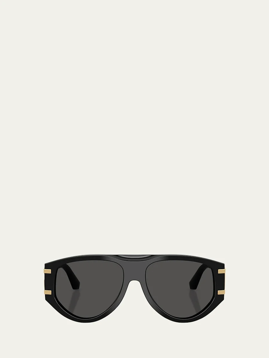 Dolce&Gabbana "DG4499" aviator sunglasses in acetate Eye/bridge/temple (in mm): 57-16-145 Solid lenses Saddle nose bridge Thick, tapered arms Signature interlocked logo at the temples Comes with case and cloth Acetate Spot clean 100% UVA/UVB protection Made in Italy Proposition 65 warning for California residents Online Inquiries: BGS21_D570R| Store Inquiries: #5003675