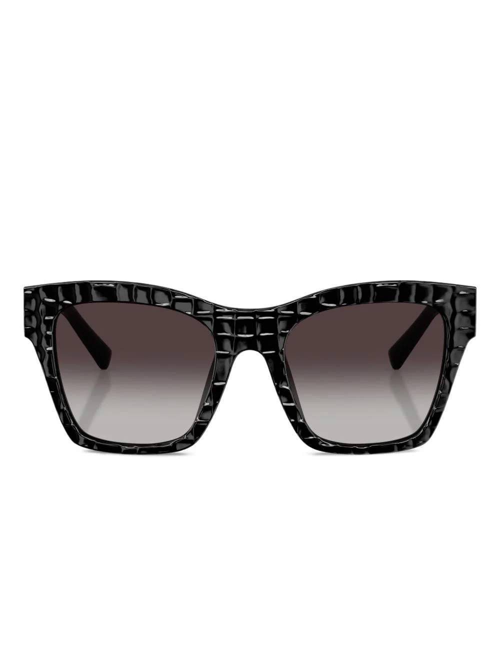 square-frame sunglasses Highlights - Black - Square frame - Crocodile embossed - Gradient lenses - Gold-tone detailing - Acetate material - These glasses come with a protective case. Made in United States Composition Acetate 100% SIZE & FIT Measurement Arm Length 5.7 in(14.5 cm) Bridge Width 0.66 in(1.7 cm) Lens Diameter 2.16 in(5.5 cm)