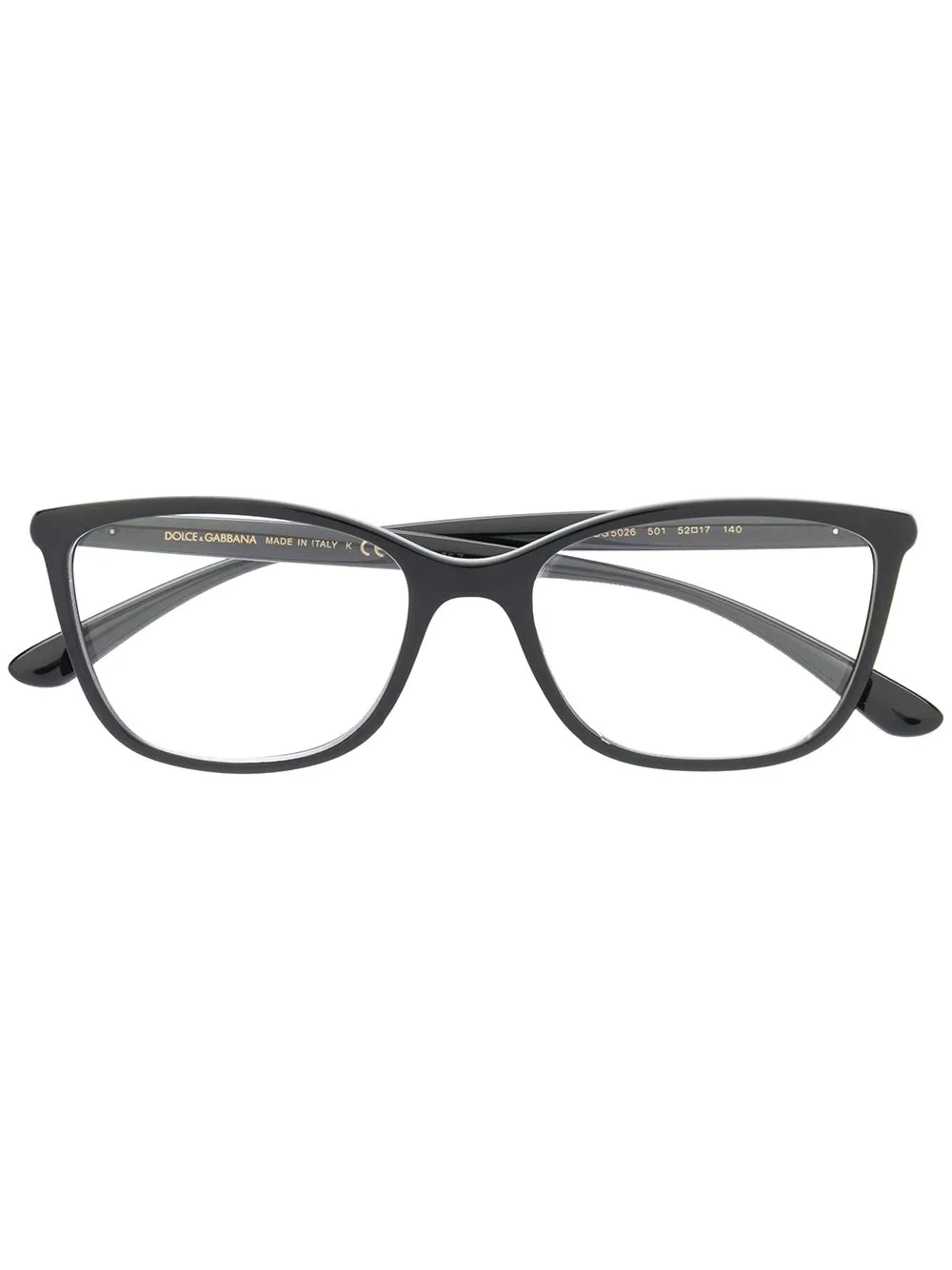 DG5026 rectangular-frame glasses Sometimes all you need is a brand new perspective. Designed with rectangular frames, these black and rose gold-tone glasses from Dolce & Gabbana Eyewear are detailed with a logo at the temple. The perfect choice to help you see things through in style. Featuring a brand logo on internal arm and straight arms with curved tips. This item comes with a protective case. Made in Italy Composition Acetate 100% SIZE & FIT Measurement Arm Length 5.51 in(14 cm) Bridge Width 0.66 in(1.7 cm) Lens Diameter 2.04 in(5.2 cm) Total Width 5.31 in(13.5 cm)