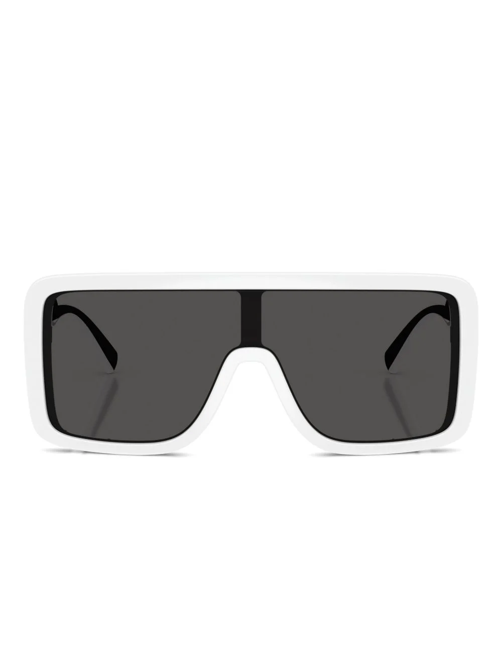 square-frame logo-detail sunglasses Highlights - White - Square frame - Logo detail on arms - Dark grey lenses - Thick frame - These glasses come with a protective case. Made in United States Composition Plastic 100%