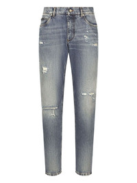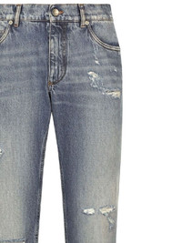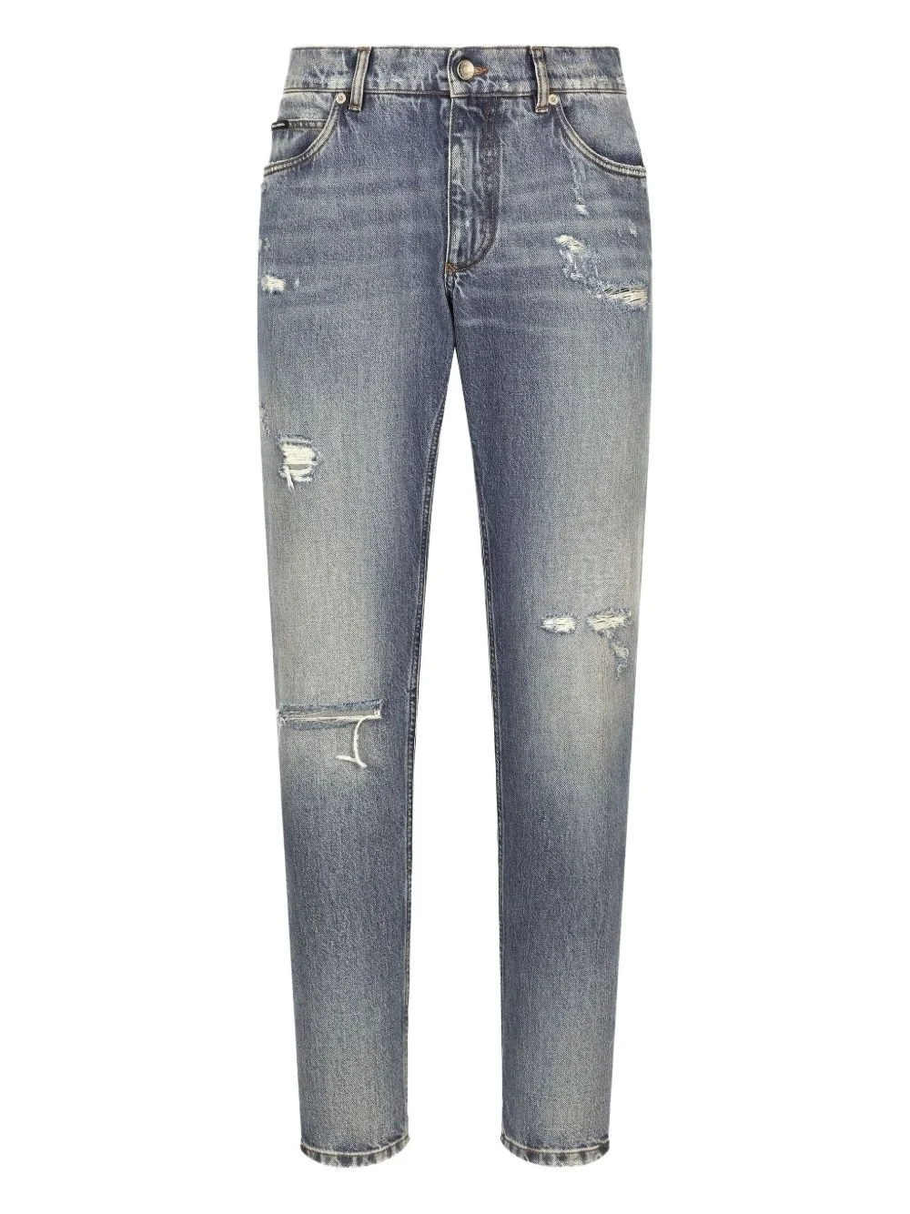 distressed logo-plaque jeans Highlights - Light blue - Distressed finish - Logo plaque - Five-pocket styling - Button fly - Belt loops Made in Italy Composition Cotton 100% Washing instructions Read Manufacturer Guidelines