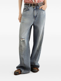 distressed panelled jeans Highlights - Blue - Panelled design - Distressed finish - Rear logo patch - Belt loops - Five pockets - Button fly fastening - Long-length Made in Italy Composition Outer: Cotton 100% Washing instructions Read Manufacturer Guidelines