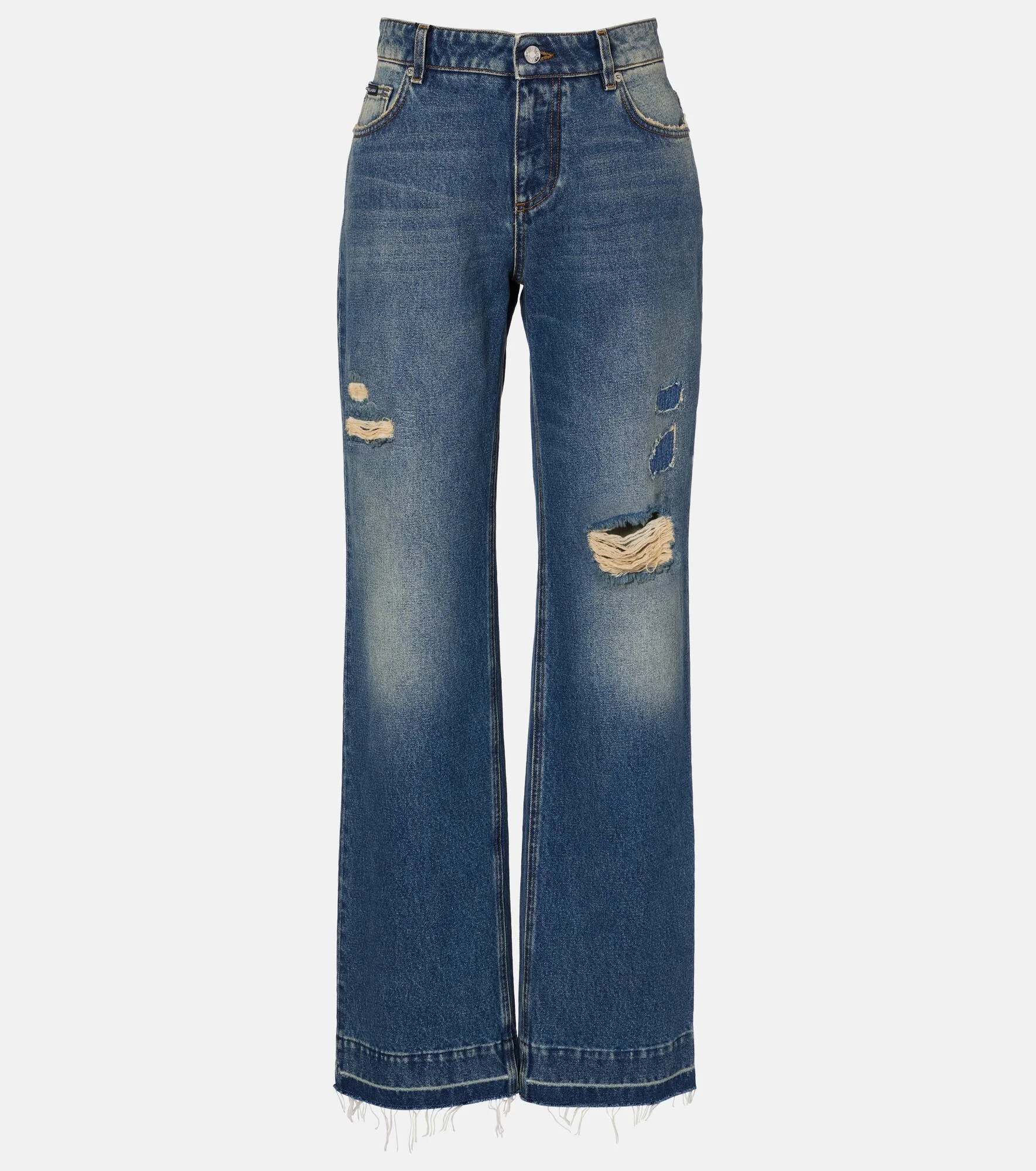 Dolce&Gabbana delivers denim essentials that adapt to any occasion and look, from casual ensembles to edgy styles. These straight jeans are designed with a washed finish and distressed detailing on both the front and back. Product Details - Material: 100% cotton - Care instructions: machine wash at 30 degrees - Made in Italy - Designer color name: Variante Abbinata - Item color: blue - Closure: zipper fly, button fastening - Pockets: five pockets - Belt loops - Item number: P01052464 Size & Fit - Fits large to size - we recommend trying one size smaller - Non-stretchy fabric - Straight leg - Low-rise - The model seen in the picture is 178cm-5'10" and wearing a size IT 38