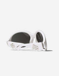 A mix of Sensuality and Strong Personality for this wrap-around oversize model, protagonist ofthe Women’s SS2024 Fashion Show. • White acetate frame • White acetate temples • Black lenses • 100% UV protection • Size lens - bridge- temple: 67 - 21 - 115 mm • Fitting: Standard • Packaging: Istitutional • Made in Italy
