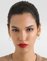 These stud earrings with hearts and DG logo, belonging to the Italian Tailoring collection, are a symbol of love and sophistication, perfect for adding a touch of elegance to any look. DG logo and hearts stud earrings: • Gold • Item equipped with a logoed box • Length 3 cm • Width 1.5 cm • Made in Italy External Composition: 80% Brass, 20% Glass