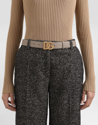 This logo belt in plonge calfskin is a classy accessory that adds a touch of elegance to any outfit. Pongee calfskin belt with DG logo: • Beige • The belt strap is 3 cm in height • DG crossed buckle with torchon inserts • Vintage brass plating • Internal customization with fire stamp • Internal packaging: logo bag • Item equipped with logo bag and a logoed box • Made in Italy External Composition: 100% Calfskin Internal Composition: 100% Calfskin This product is made with leather from tanneries certified according to environmental standards.