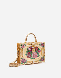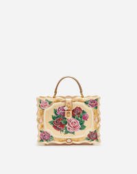 A brand icon, the Dolce Box embodies the brand’s craftsmanship, love and attention to detail. Sophisticated and elegant, it comes in hand-painted wood with iconic floral designs, which symbolize femininity: • Padlock fastening in vintage plated brass with enamel flower embellishment • Top handle and adjustable and detachable shoulder strap in laminated Dauphine calfskin with vintage brass-plated snap-hooks • Nappa leather lining and inner pocket with concealed magnetic closure • Metal feet studs on the base • Item comes with special packaging • Measurements: 19 x 14.5 x 7 cm - 7.5 x 5.7 x 2.8 inches • Made in Italy Care And Details External composition: 90% Polylactic Acid 10% Calfskin