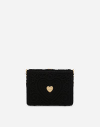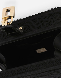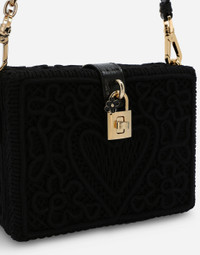A brand icon, the Dolce Box bag embodies craftsmanship, love and attention to detail. Coming in fine cordonetto lace, which embodies Sicilian tradition and represents the brand's signature aesthetic, it creates the image of a feminine and unique woman. This version features the introduction of a new shoulder strap with DG logo branding: • Padlock fastening in light gold-plated metal with enamel flower embellishment • Detachable crocodile-print calfskin strap • Calfskin lining • Inner pocket with concealed magnetic fastening and a card slot fastening • Item comes with special packaging • Measurements: 14.5 x 19 x 7 cm - 5.7 x 7.5 x 2.8 inches • Made in Italy Care And Details External composition: 85% Cotton 15% Calfskin
