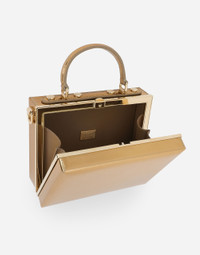 The Dolce Box bag embodies the brand’s craftsmanship, love and attention to detail. Elegant and unique, it comes in mirrored-effect calfskin with charm-embellished chain detailing. Mirrored-effect calfskin Dolce Box bag with chain and charm detailing: • Gold • Snap fastening • Top handle and adjustable, detachable strap in mirrored-effect calfskin • Calfskin lining and flat pocket • Item comes with a branded dust bag • Measurements: H12.7 x W17 x D6 cm • Made in Italy External composition: 100% Calfskin Internal composition: 95% Calfskin 5% Poplar Plywood