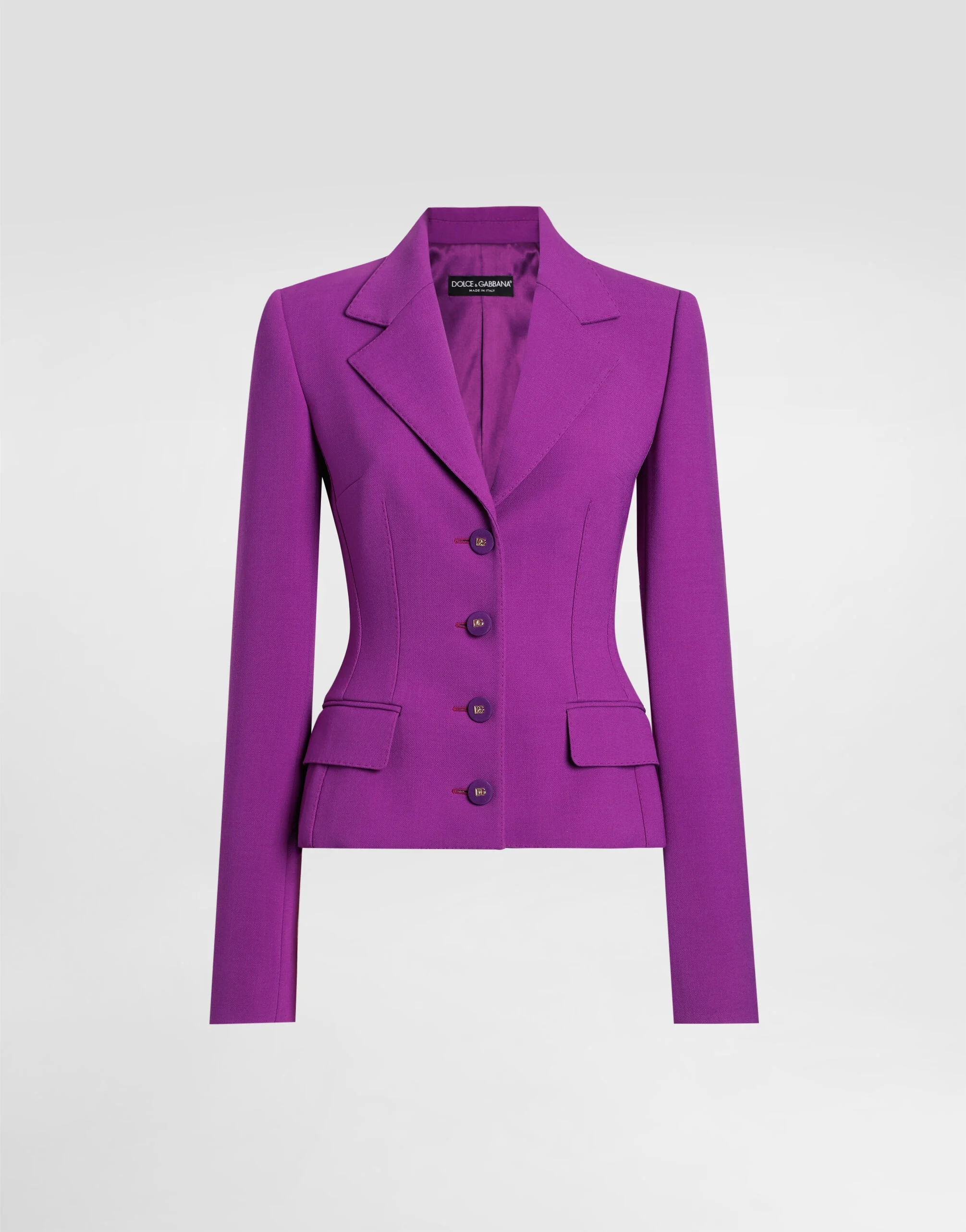 This jacket represents timeless elegance and sartorial mastery. Perfect for a sophisticated look, it is a garment that combines style and quality. Dolce double crepe jacket: • Violet • Notch lapels • Melton underneck • With buttons • Welt pockets • Cotton wool basque on the sides • Fully adhesive • The model is 175 cm tall and wears size 40 IT • Made in Italy External Composition: 100% Virgin Wool Internal Composition: 92% Silk, 8% Elastane