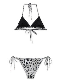 leopard-print bikini Highlights - Light grey - Rear tie fastening - Side-tie bottoms - Be mindful to try on swimwear over your own garments. Made in Italy Composition Outer: Zamak 100%, Polyamide 72%, Elastane 28% Lining: Polyamide 88%, Elastane 12%