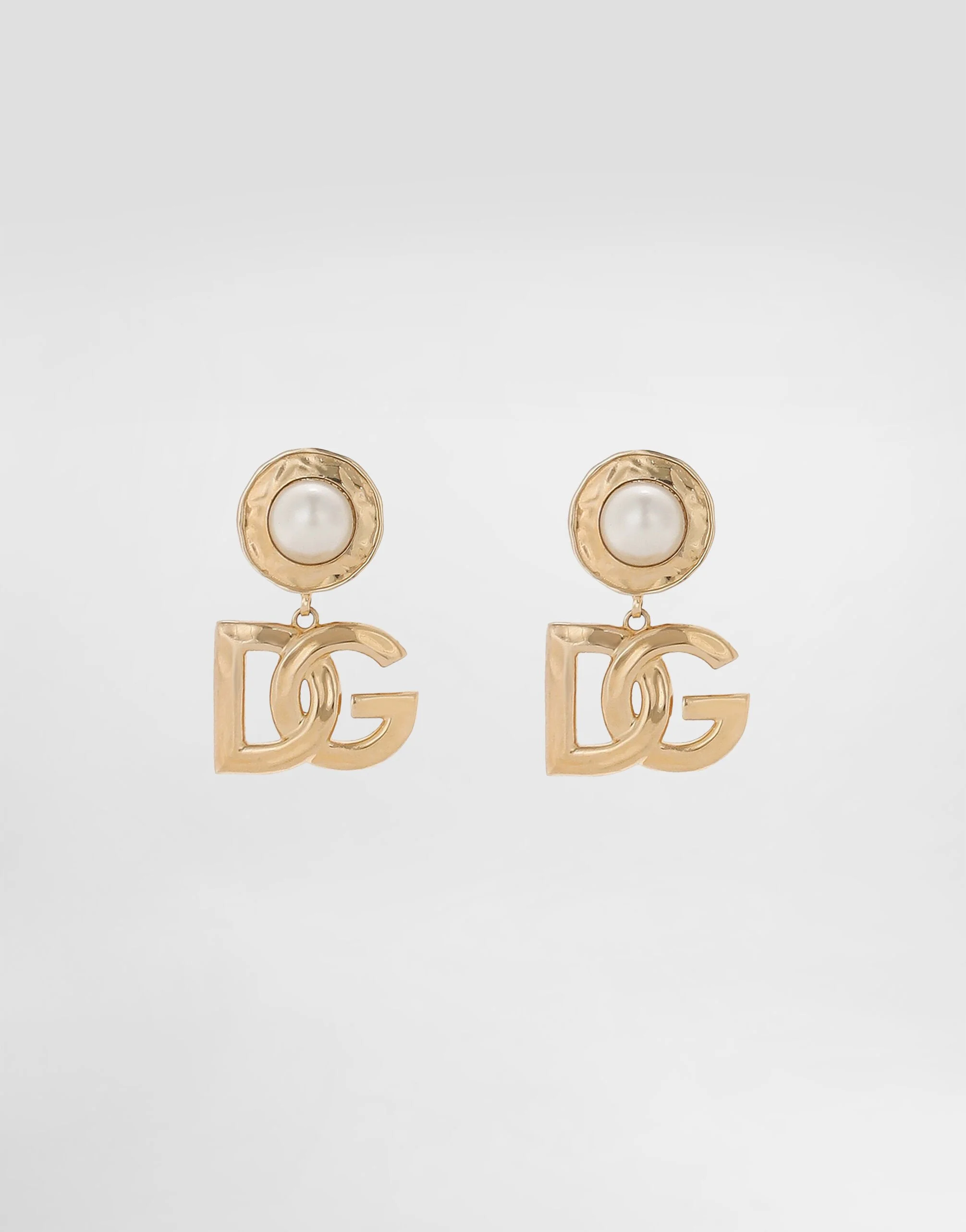 The Dolce&Gabbana Jewelry Collection is filled with unique pieces boasting great craftsmanship. Contemporary accessories with original and exclusive DG logo details, featuring different plated finishes, will be perfect for finishing off any look with style. Drop earrings with cabochon details and the DG logo: • Gold • Clip-on fastening • Height: 4.3 cm • Nickel-free and hypoallergenic materials • Engraved logo • Made in Italy External composition: 80% Brass 20% Plastic