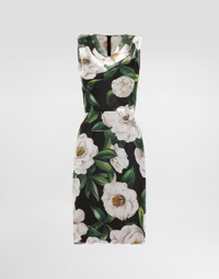 The Women's Black Sicily Collection reinforces Dolce&Gabbana's iconic fabrics and codes rooted in Italian heritage. Sensual silhouettes, highlighted by floral prints and refined corsetry, evoke an intriguing elegance, while the iconic black lace, satin, and velvet dominate the collection. Denim in various shades of blue introduces a contemporary twist, balancing the classic and modern. Embroidered crosses, medals, and jewelry add a sophisticated touch. Silk chiffon midi dress with gardenia print: • Multi-colored • Neck with hood • Sleeveless • Stretch silk crepe de chine slip dress • Zipper fastening at the back • The piece measures 60 cm from the waist down on a size IT 40 • The model is 175 cm tall and wears a size IT 40 • Made in Italy External composition: 100% Silk Internal composition: 91% Silk 09% Spandex