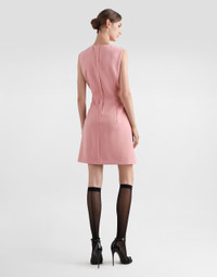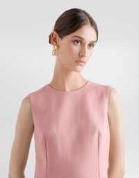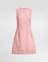 The Women’s DNA Collection is introducing a new side to femininity, which comes in shades of rose quartz, poised between sheerness and opacity, lightness and structure, formality and sensuality. Geometric Dolce Jackets, jacquard pajamas and floral brocade dresses intertwine with ultra-romantic designs. The DG print becomes an iconic statement, while Cordonetto lace and hints of Sicily Black embody the essence of a determined yet romantic femininity. Wool crepe midi fit-and-flare dress: • Pink • Round neckline • Sleeveless • Tonal stretch silk satin lining • Rear zipper and hook-and-eye fastening • The piece measures 50 cm from the waist down on a size IT 40 • The model is 175 cm tall and wears a size IT 40 • Made in Italy External composition: 100% Virgin Wool Internal composition: 92% Silk 8% Spandex