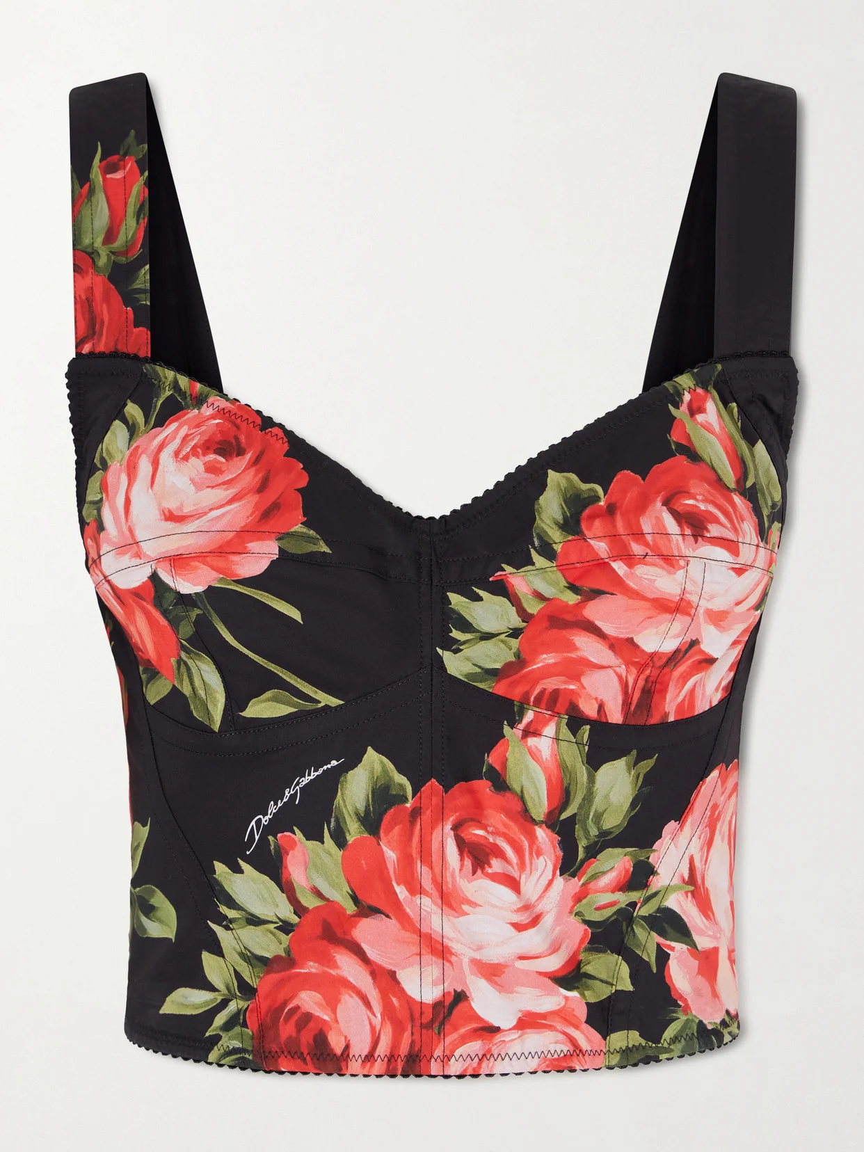 Dolce & Gabbana's romantic sensibility shines through in this rose-printed bustier top, which draws inspiration from classic lingerie. Made from cotton-blend poplin, has sculpting seams, wide straps and a hem that highlights your waist. Style it with the matching skirt or high-rise denim.
